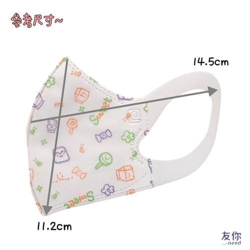 【口罩尺寸】兒童長 14.5 公分 x 寬 11.2 公分 ± 0.5 公分